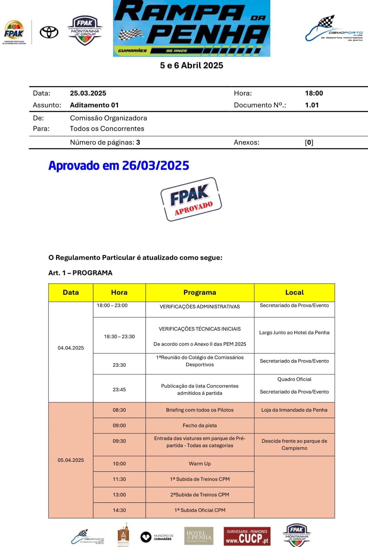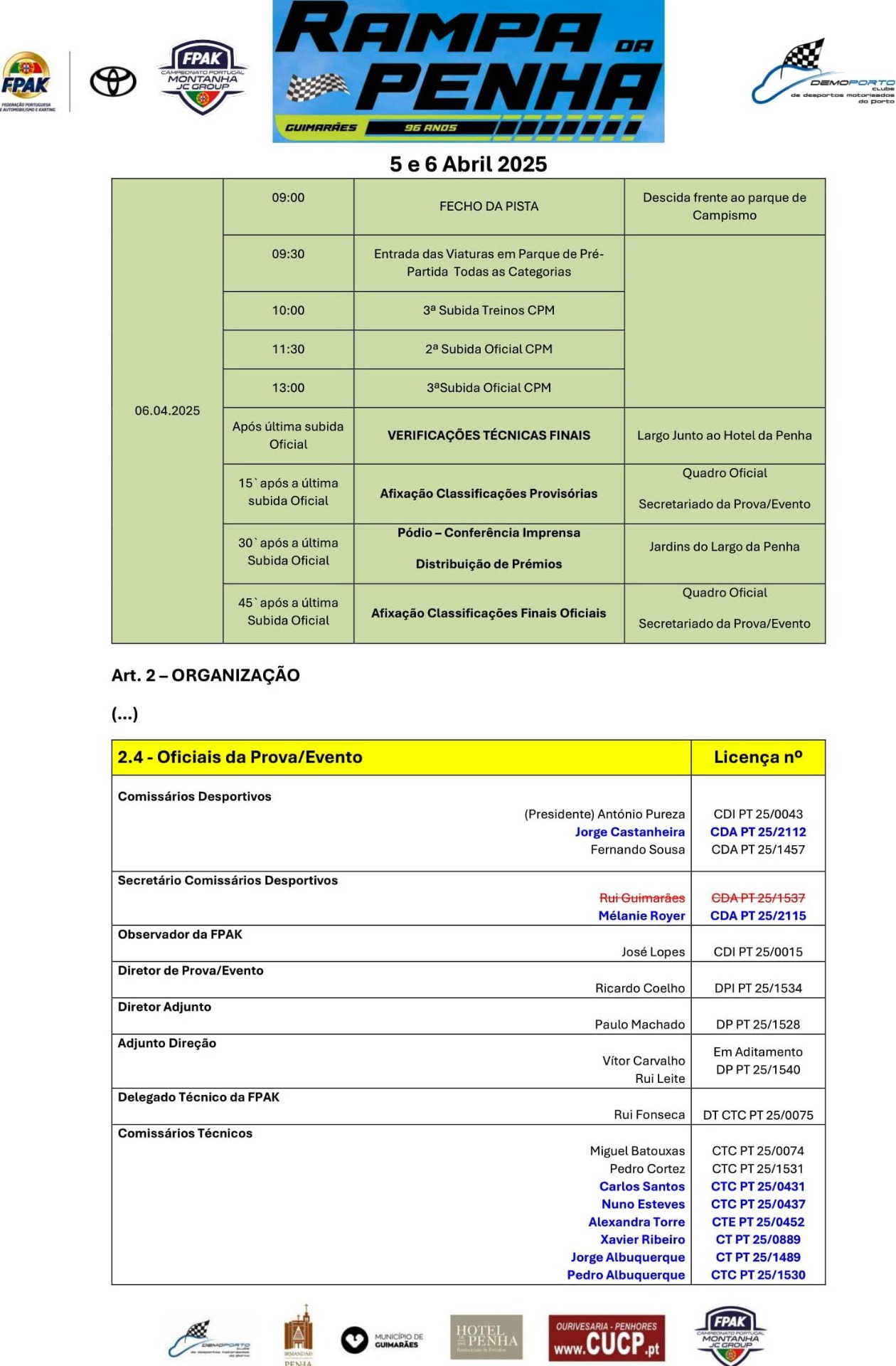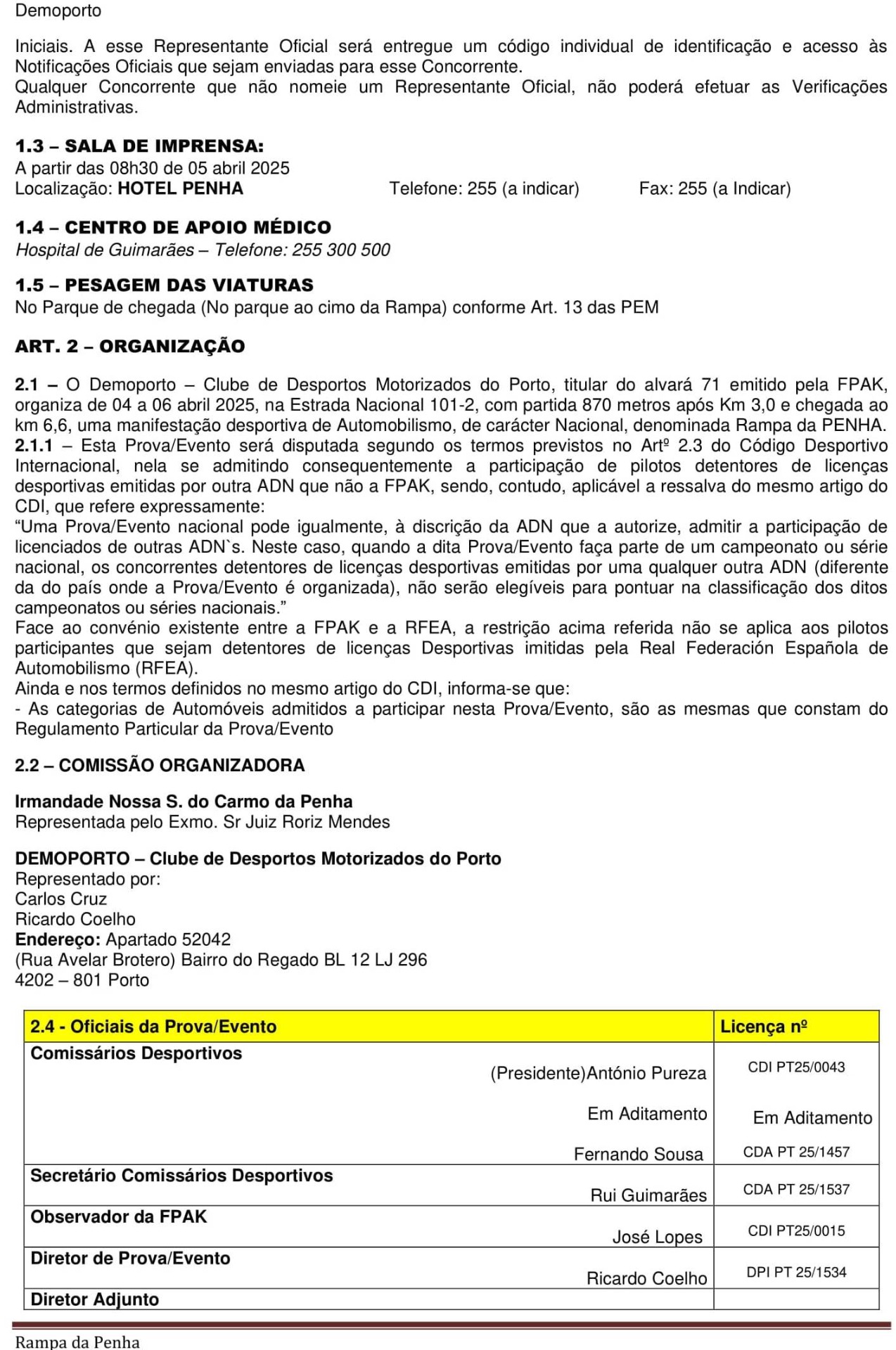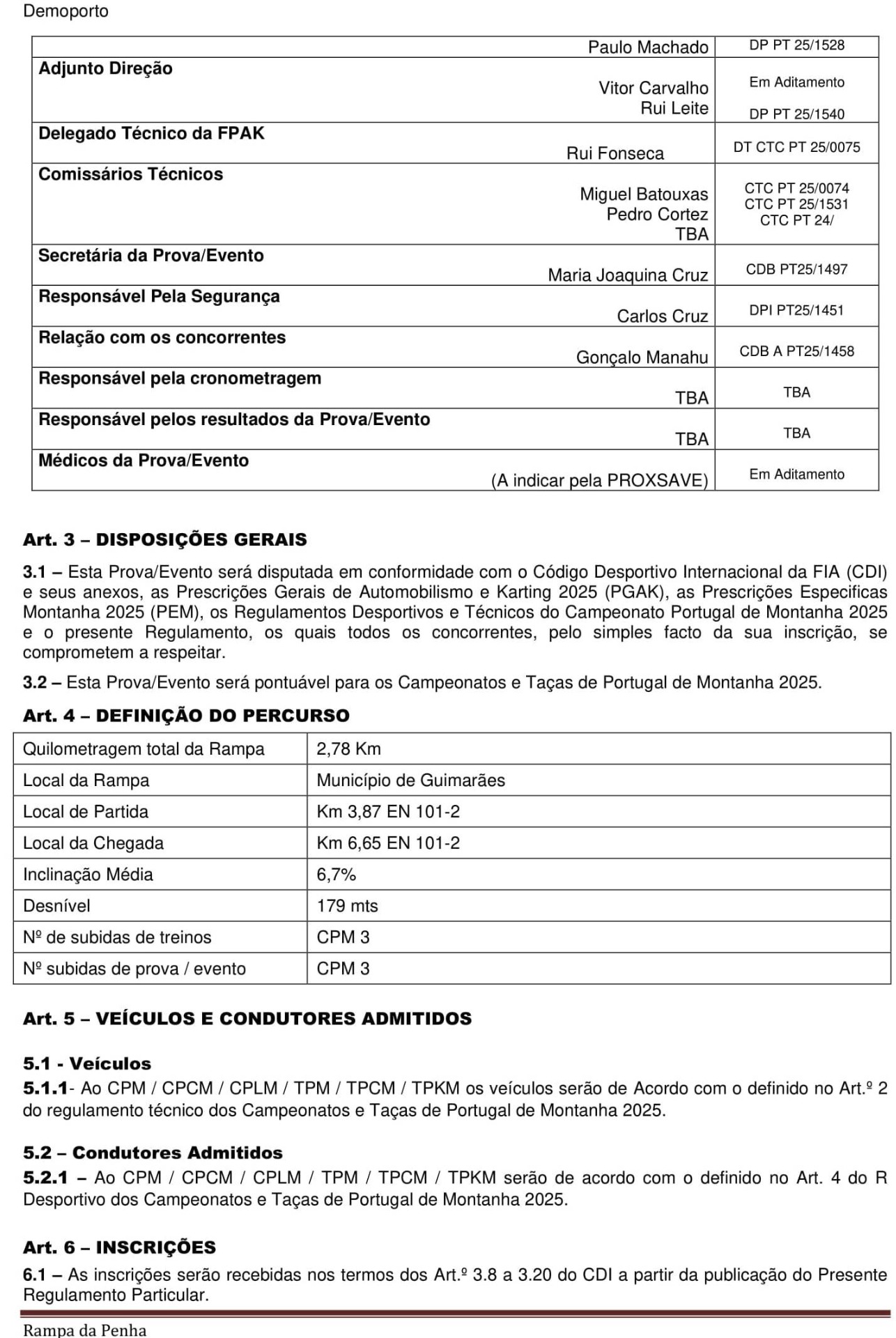 Lista de Inscritos + Aditamento N.º 2 + Aditamento N.º 1 + Regulamento Particular + Mapa Parque da Penha