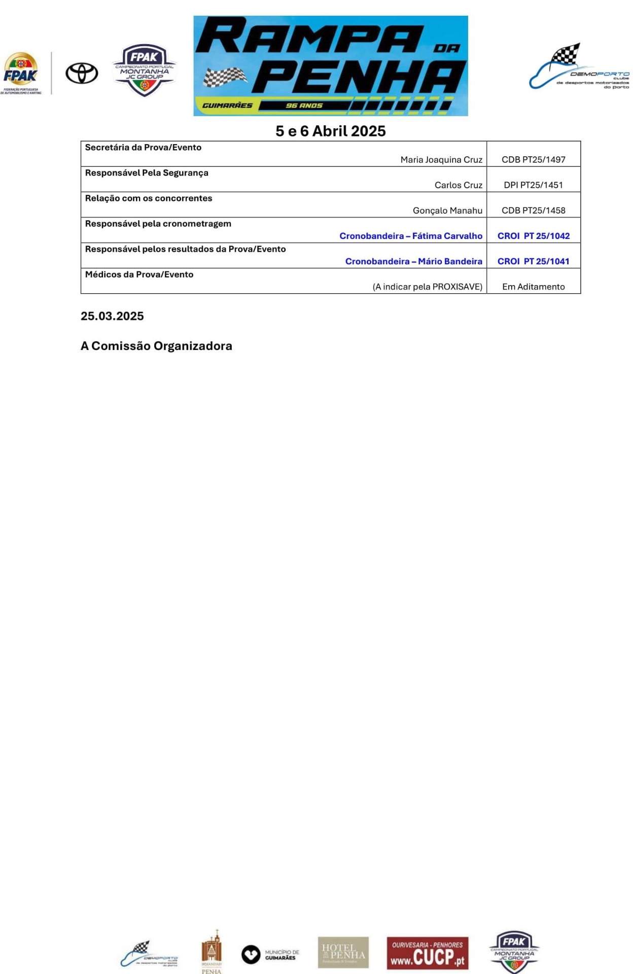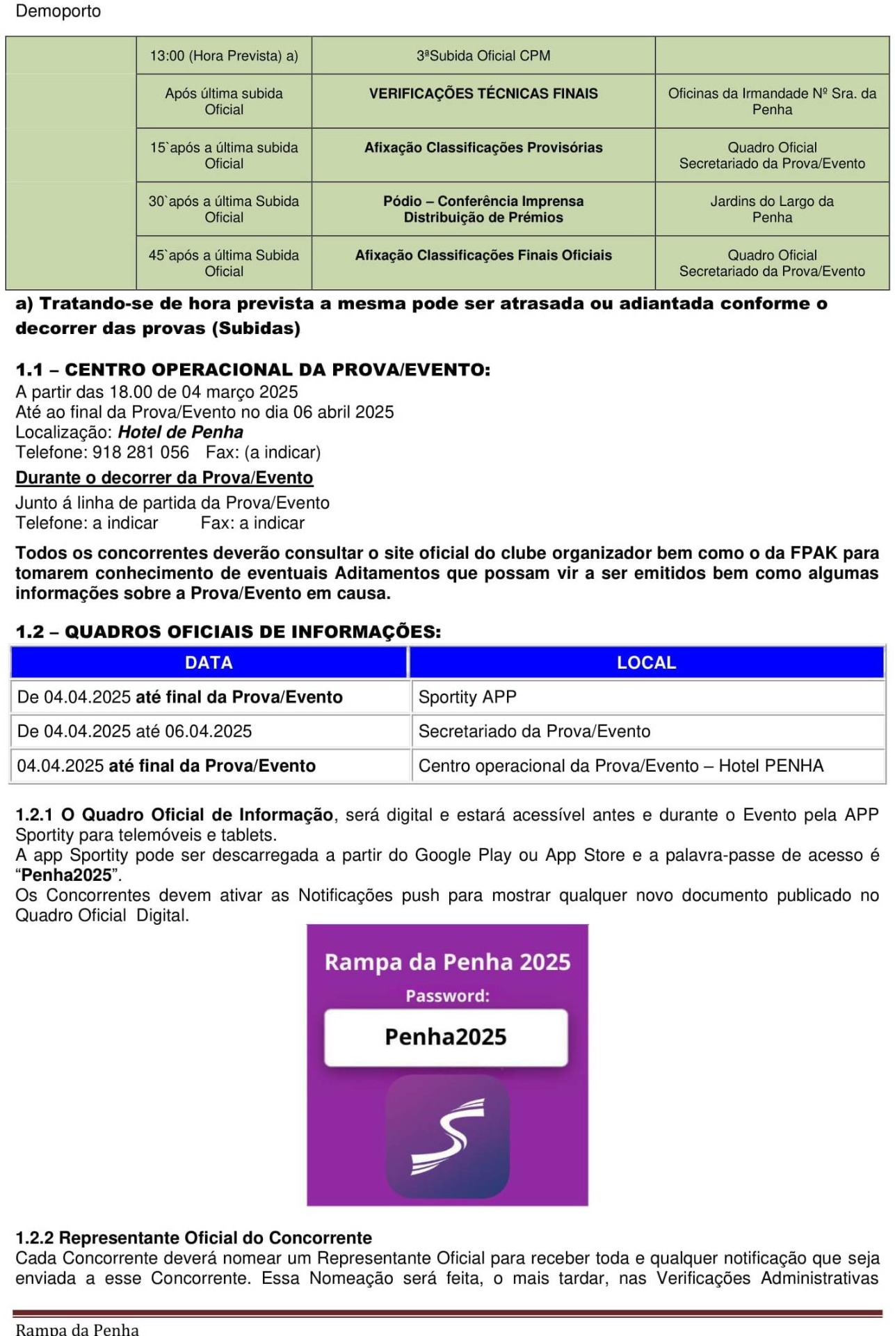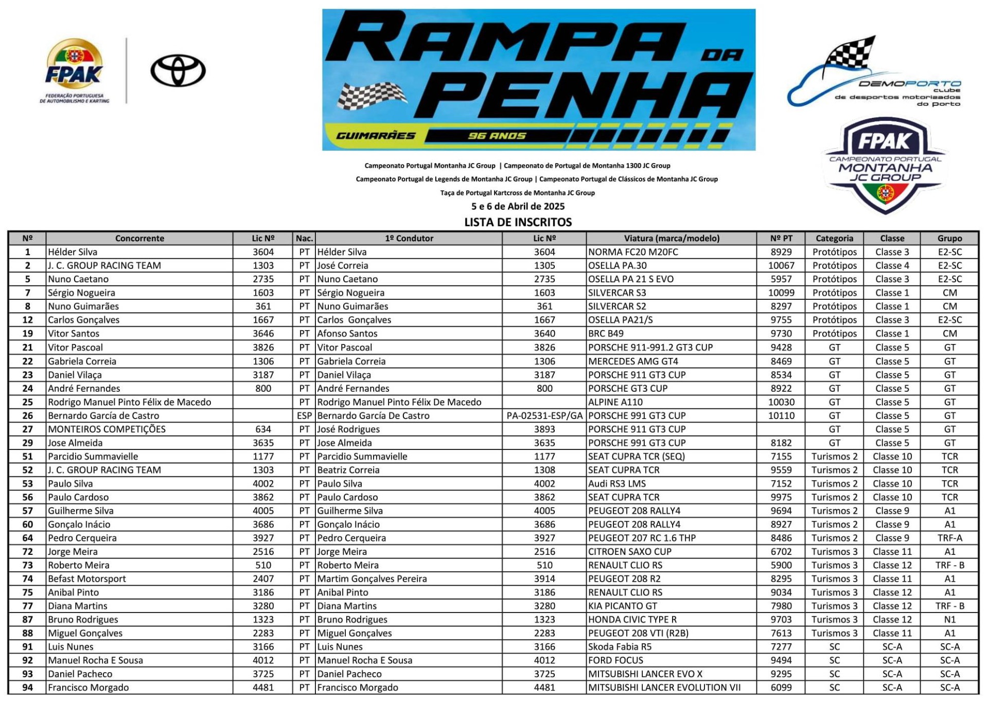 Lista de Inscritos + Aditamento N.º 2 + Aditamento N.º 1 + Regulamento Particular + Mapa Parque da Penha