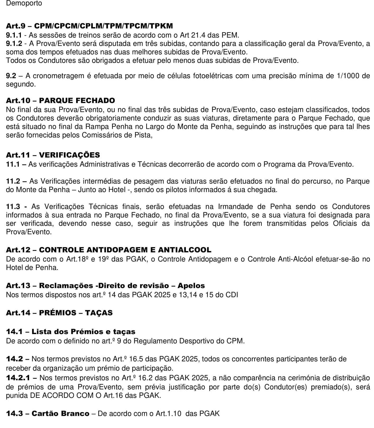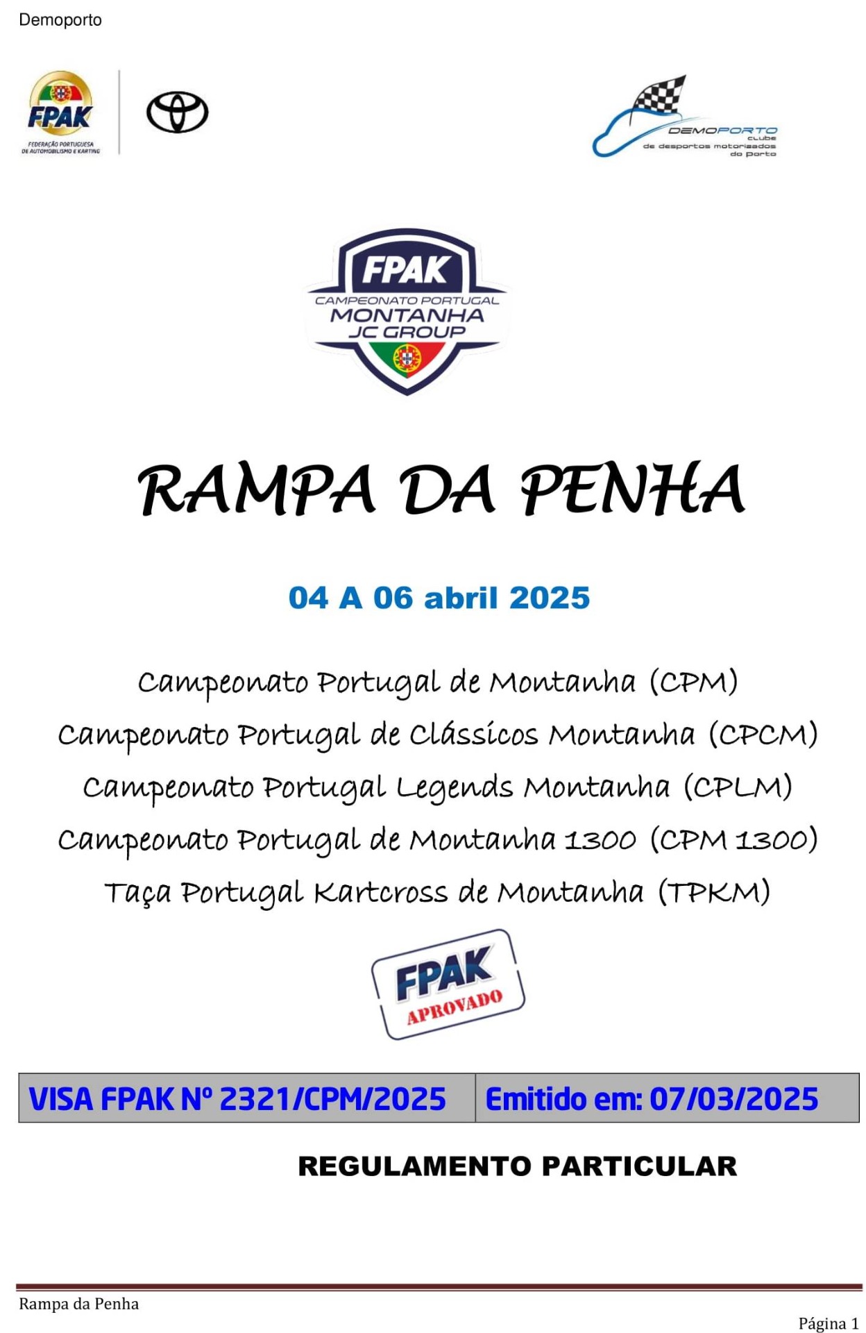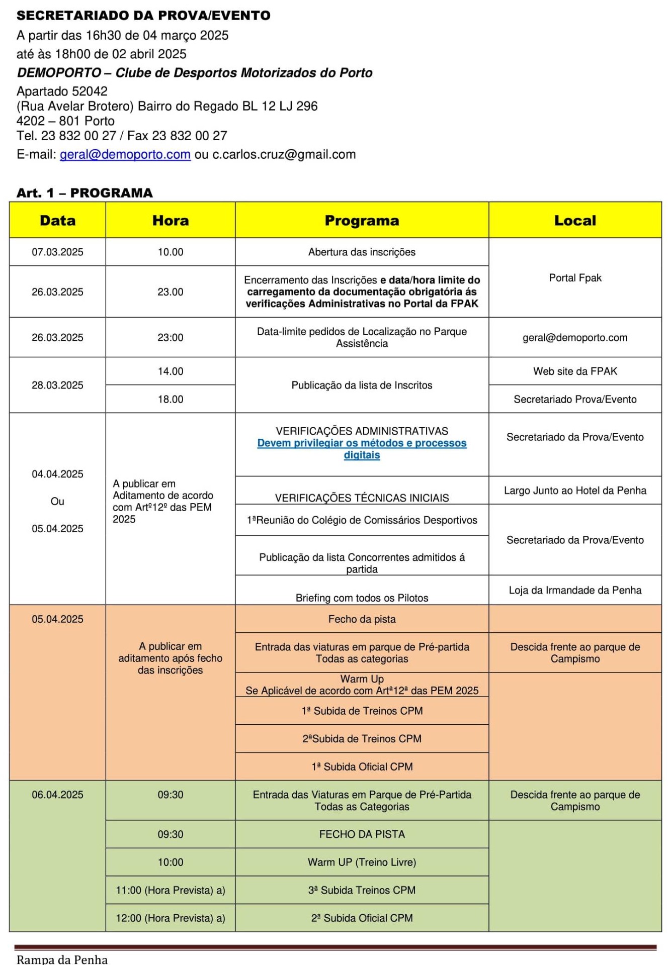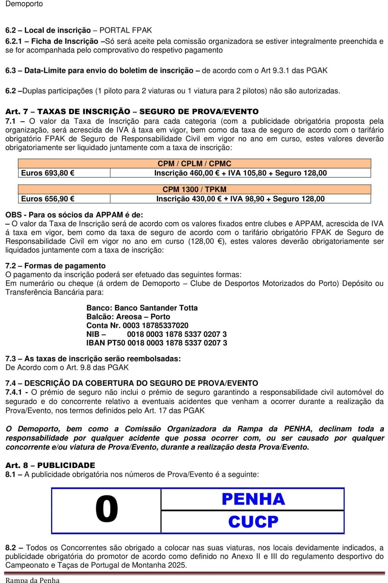 Lista de Inscritos + Aditamento N.º 2 + Aditamento N.º 1 + Regulamento Particular + Mapa Parque da Penha